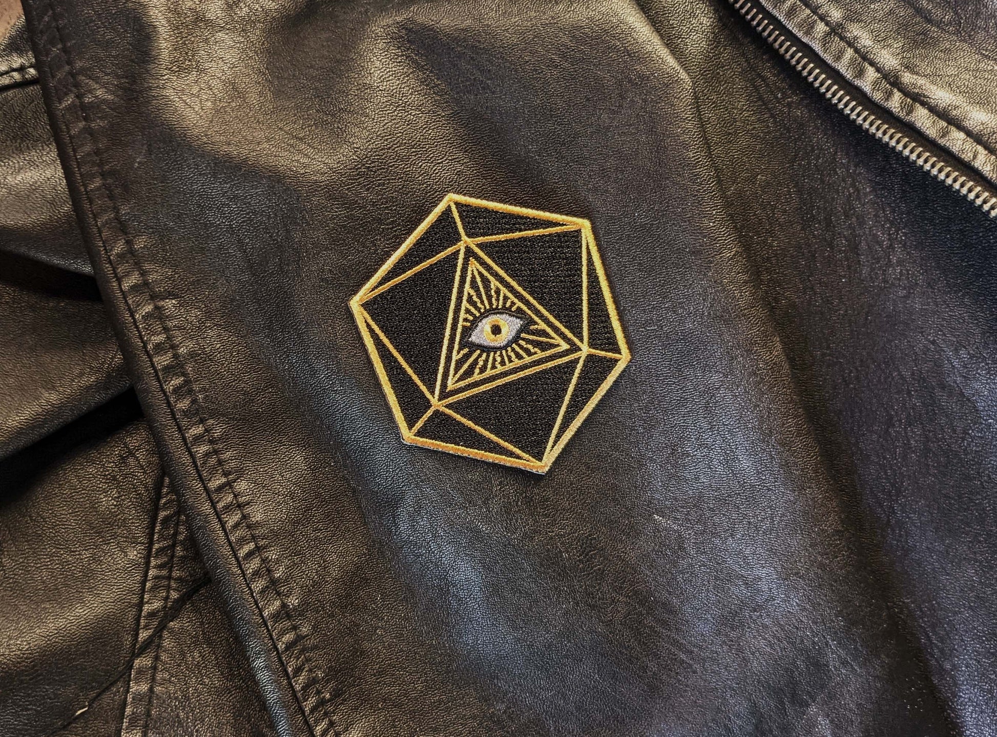 This iron-on patch is fully embroidered in black and gold, and has an iron-on backing. It'll look perfect on your jacket, backpack, or dice pouch!